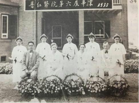 1935年普仁医院护校第六届毕业纪念,前排右一为李克乐先生