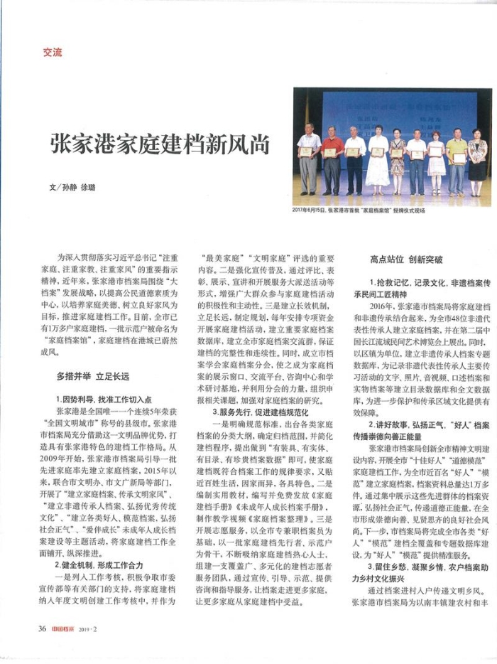 孙静 徐璐:张家港家庭建档新风尚