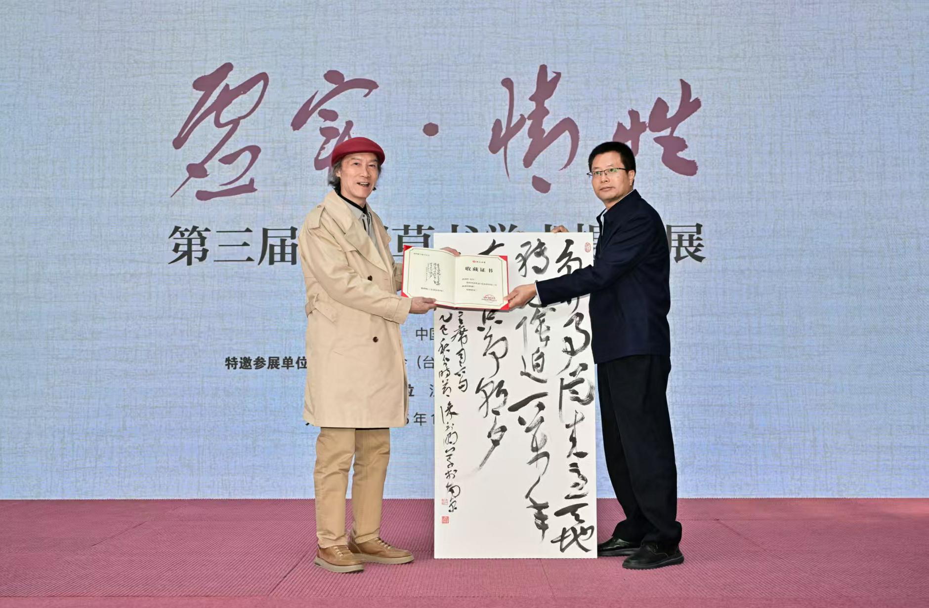 来自中国台湾的简名伟(南京云锦博物馆馆长)表示,书法艺术乃中华民族之瑰宝,此次全国草书学术提名展的举办,为两岸书法家搭建了珍贵的交流平台,让大家能在笔墨的流转间感受中华文化的博大精深,增进感情。未来期待与中国标准草书学社及两岸各界加强合作,共同推动书法艺术的传承与创新,让标准草书作为独特的文化载体,为增进两岸同胞的文化认同和情感联结注入更多正能量。