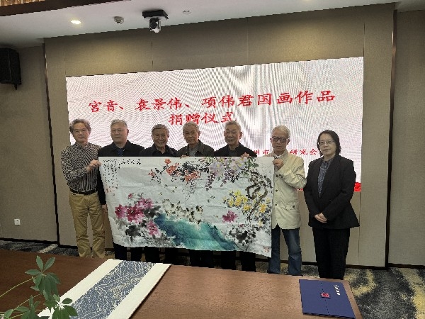 11月7日上午,苏州金阊书画院宫音、袁景伟、项伟君等人画作捐赠仪式在苏州市档案馆举行。仪式现场,多幅佳作正式入藏市馆,包括宫音创作的《正是江南好风光》、袁景伟的《醉春风》、项伟君的《庄生梦里飞》,以及由宫音、张驰、袁景伟、刘彪、陆国兴、项伟君、仲晓、于丽莉、叶晨9位画家联袂创作的集体画作《秀狸戏春》。苏州市档案馆副馆长贾莉、市书画研究会会长陶宝华,以及研究会前会长夏维淳、副会长钱杲等嘉宾应邀出席仪式。