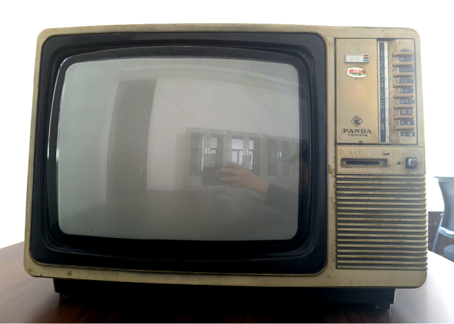 黄德玉、黄德梅、黄卫华、黄桂香四兄妹联合捐赠金湖县第一台彩电——上世纪80年代南京无线电厂生产的熊猫牌14寸彩电。
