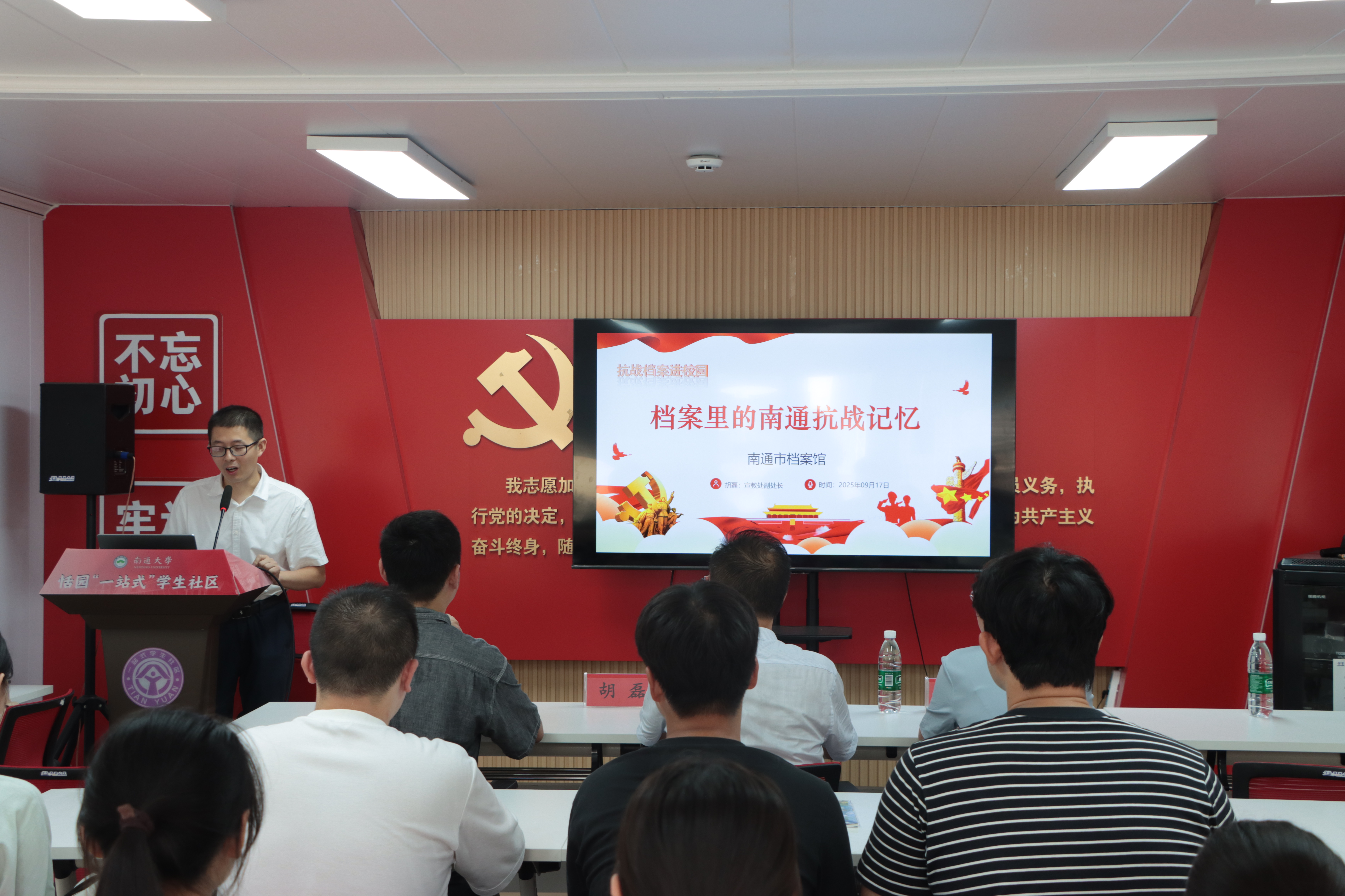 为深入贯彻落实习近平总书记对档案工作和对学校思政课建设重要指示批示精神,发挥好档案“存史资政育人”的作用,推动档案走出库房、走进学校,9月17日,南通市档案馆和南通大学历史文化学院联合开展“抗战档案进校园”宣讲活动。市档案馆工作人员走进南通大学“恬园”一站式学生社区开设讲堂,作《档案里的南通抗战记忆》专题讲座。来自历史文化学院、口述历史协会、张謇研学社的30余位学生参加了活动。