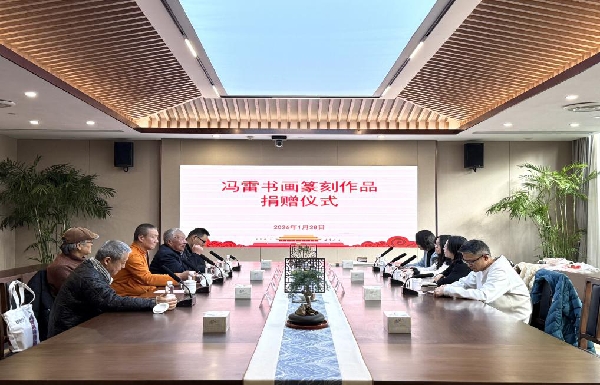 1月28日,苏州市档案馆举办冯雷书画篆刻作品捐赠仪式。苏州博物馆原常务副馆长钱公麟、民革苏州中山书画院院长冯豪、民革苏州市委会宣调处处长程小翰、过云楼后人书画收藏家吴刚等人前来参加,共同见证活动。