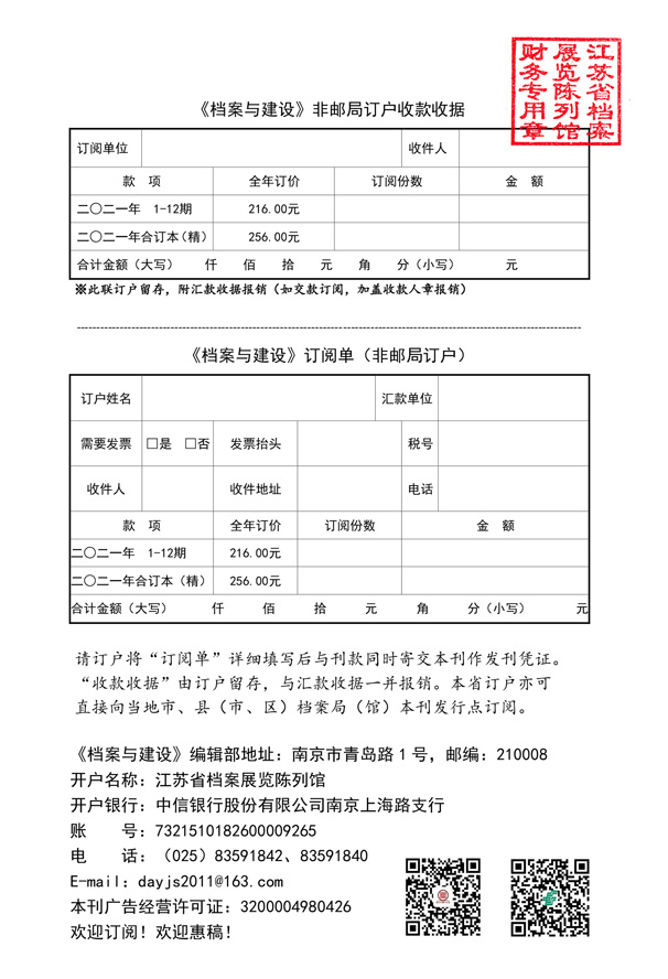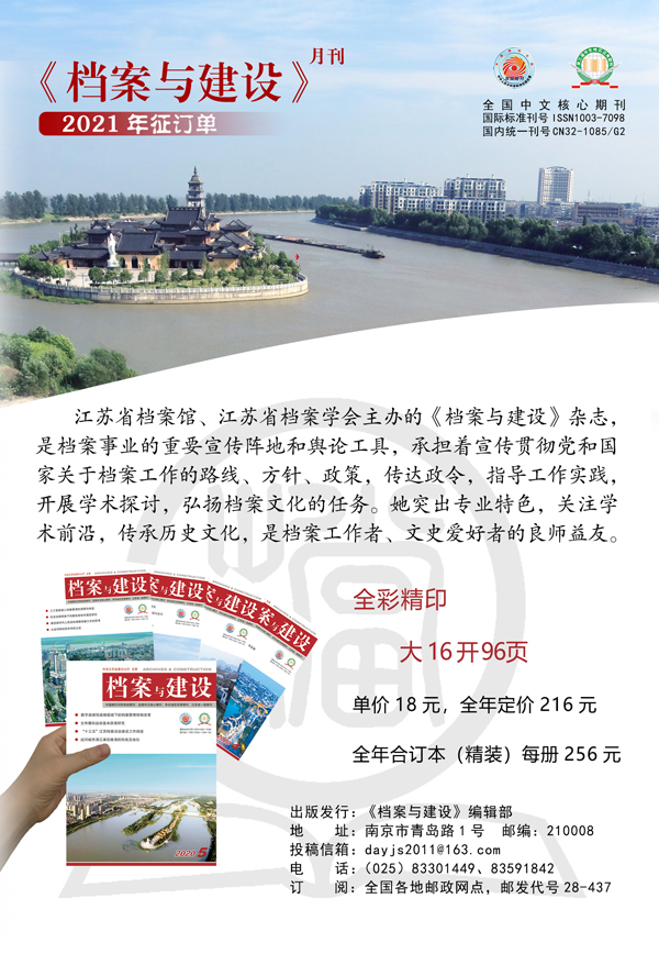 《档案与建设》2021年征订单