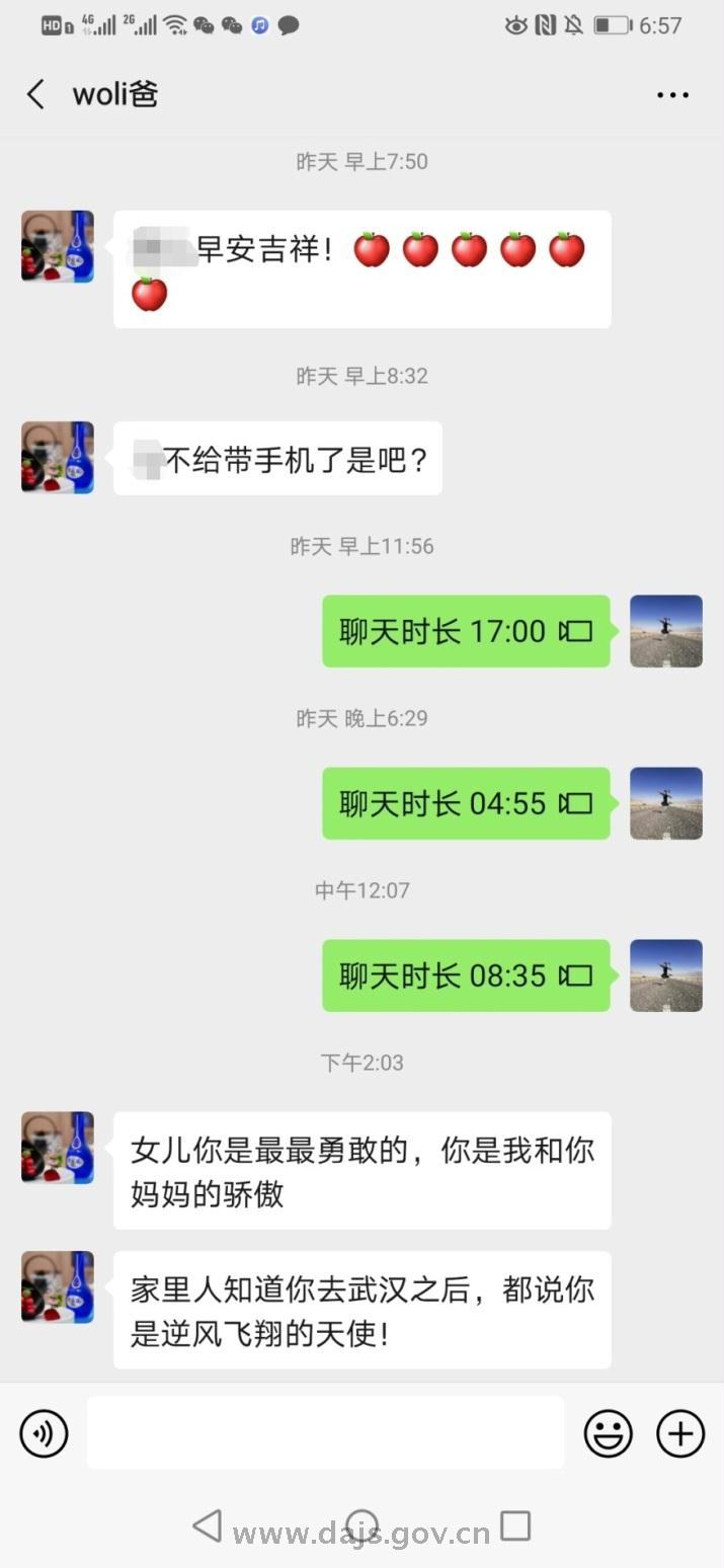 今天是我轮休,借此机会向爸妈交流了一下工作生活情况。爸妈很支持我的决定,亲人们知道我来支援后,都说我是逆风飞翔的白衣天使。可哪有什么白衣天使啊,只有我们自己知道,我们并非天使,而是平凡的普通人。作为一名医护人员,在国家需要的时候,勇敢地承担起自己的职责。面对新型冠状病毒的疫情,我们一个个如同战士一般出征,逆行在车站、机场、医院。运用科学的护理知识,与新型冠状病毒做抗争,为越来越多的感染患者恢复健康贡献绵薄之力。在未来的战役当中,我们每一个中国人都在凝聚着我们力所能及的力量,一定能够获得这场抗疫战争的胜利。我们希望的是,看到一个又一个病人出院的笑脸。盼冬去春来,病去笑来!