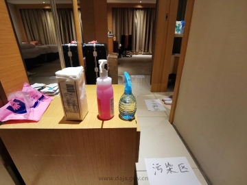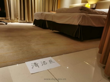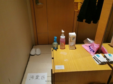 2月15日凌晨,第一天的工作结束。回到酒店后,洗完澡已经五点半钟,抓紧躺到床上休息。当九点半钟醒来时,打开窗户,外面竟飘着鹅毛大雪,没想到2020年的第一场雪,竟然是在武汉看到的。吃过早饭后,收拾了房间,把房间进行分区管理,分为污染区,半污染区和清洁区。物品放置也按区域分开,在门外就要脱掉来回医院的外套和鞋子,并放置在门外。从房间外开门后,要对门把手进行酒精消毒。在房间外、宾馆内穿着的衣裤放污染区,可挂于门后。之后立即进入卫生间进行清洗消毒,该部分空间即为半污染区。房间内其他活动空间,属于清洁区。床是最干净的区域,要保证绝对的清洁。每天对房间进行全面消毒,每天至少两次通风。