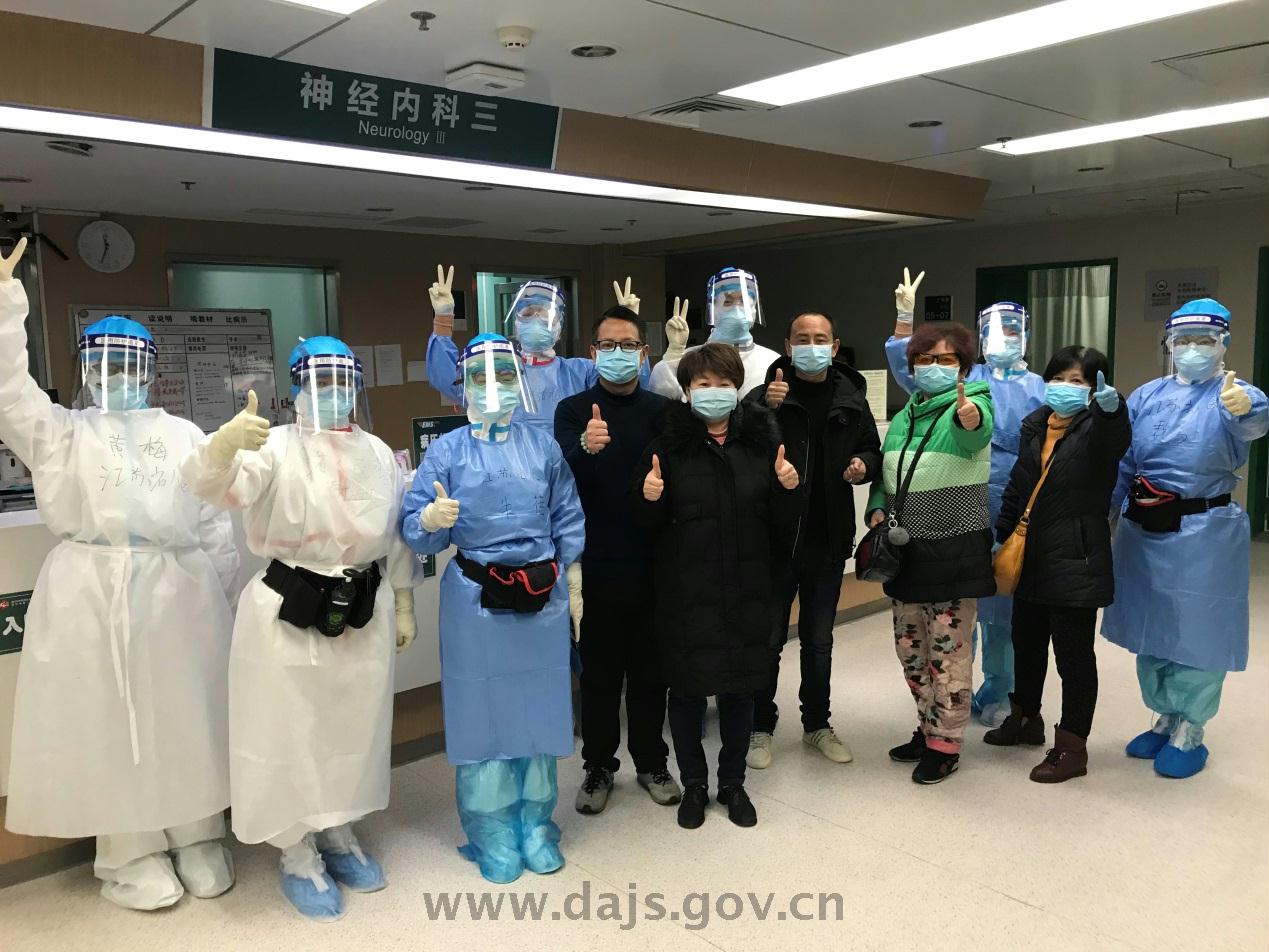 “感谢你们,为了我们大家,舍弃自己的家庭,大老远跑到这儿,也希望你们早日回家”。临近2月29日中午我们去接班,病房护士站围了一群人,有穿着厚重的防护服的医护人员,还有背着大包小包、拖着行李的病人。原来是武汉市第一人民医院感染科五病区第一批出院患者,特地向在“抗疫”一线的江苏医疗队道别,表示感谢。我们江苏医疗队于2月14日,在武汉市第一人民医院组建接管了感染科五病区,当晚收治患者61人。经过半个月的系统治疗和精心护理,其中五位患者各项检查均符合出院标准,成为我们最早一批出院的患者。