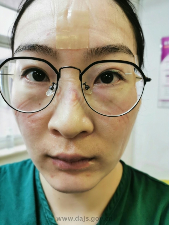 今天我的班次是上午8点到12点,因为需要穿脱防护服,早上6点半即集合准备,下午1点半才回到驻地宾馆,期间无法饮水饮食。当摘下口罩的那一刻,看到镜子里的自己,满脸的印记和口罩压出的水泡,眼眶顿时湿润。看着守护的患者恢复健康是“抗疫”一线医护人员最大的喜悦,觉得一切付出都是值得的,更加坚定自己的选择,迎接春天与胜利。