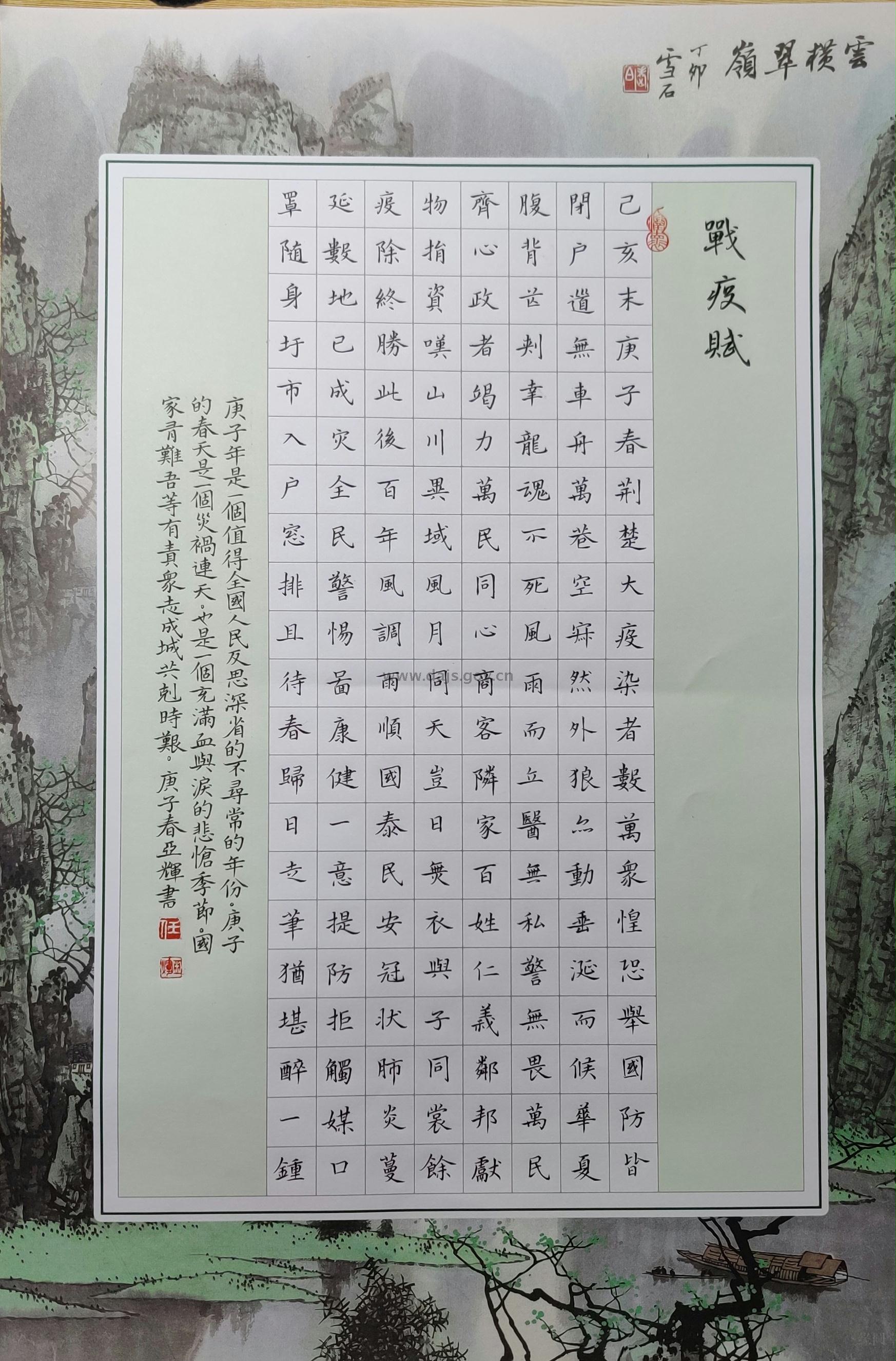 4月9日,描绘了荆楚大地疫情暴发后,武汉人民和全国人民以及工作人员众志成城抗击疫情情形的硬笔书法作品《荆楚战疫赋》被省馆收藏保存。