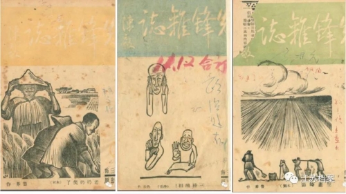 《先锋杂志》还有一个重要的特色:每期封面都配有生动活泼的木刻画。这些木刻画由鲁迅艺术学院华中分院的鲁莽、莫朴、铁婴等人创作。《先锋杂志》因此成为抗日战争期间苏北根据地中很有影响的一份刊物。
