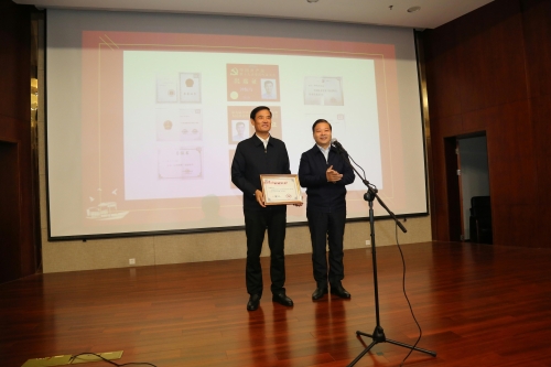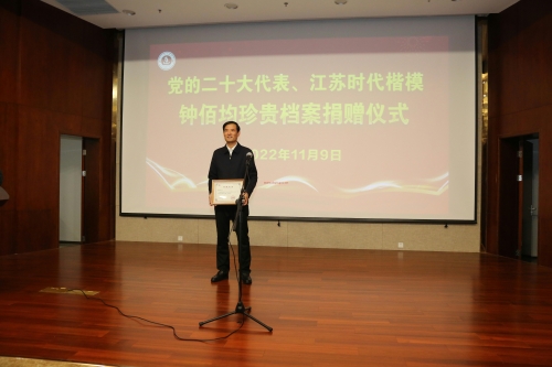 近日,党的十九大、二十大代表、江苏省“时代楷模”钟佰均珍贵档案捐赠仪式在连云港市档案馆举行。连云港市档案馆党组书记、馆长许思文为钟佰均颁发收藏证书,党组成员、副馆长韦林海主持捐赠仪式。