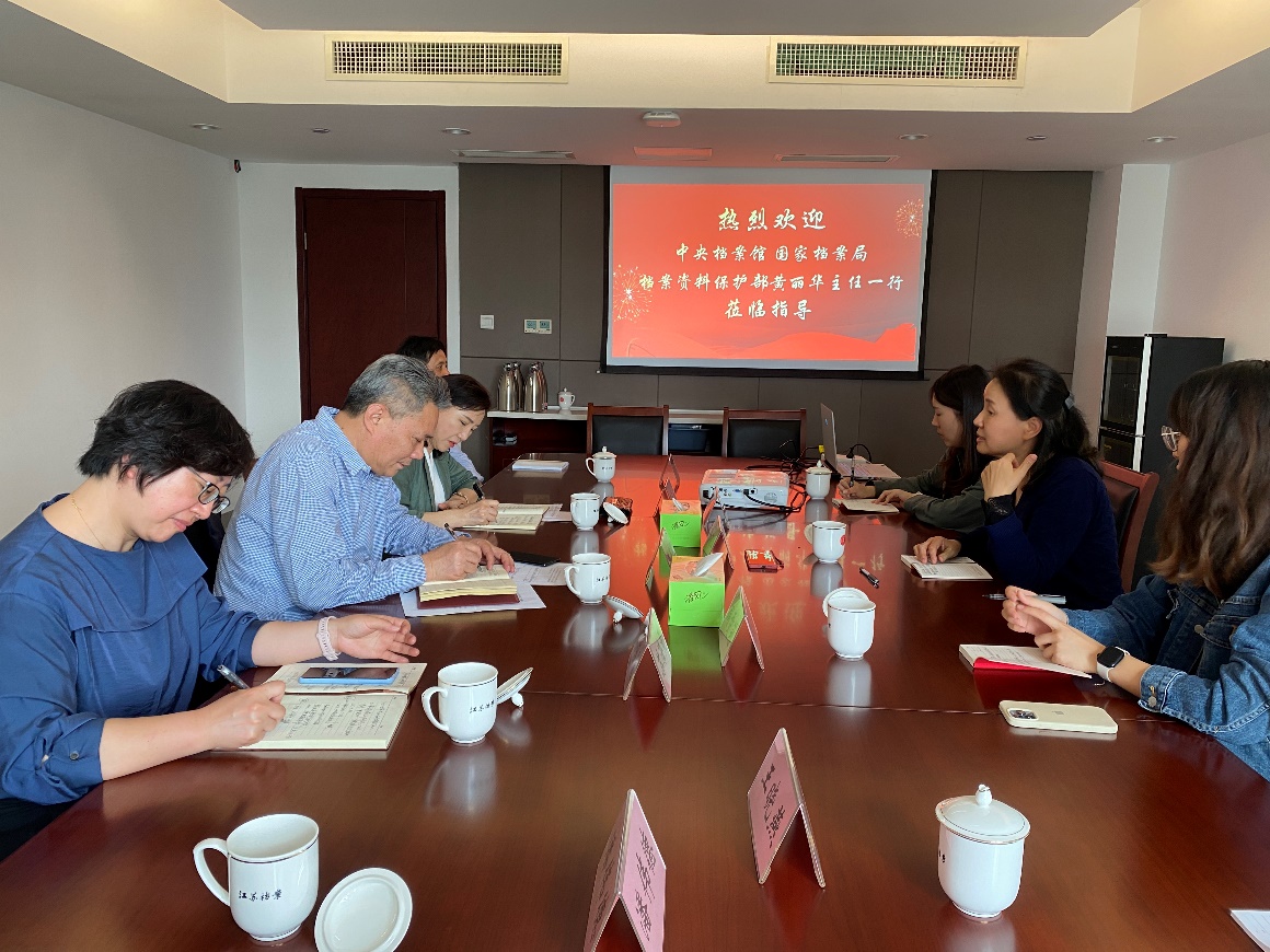 4月19日下午,中央档案馆、国家档案局档案资料保护部主任黄丽华主任(一级巡视员)一行来省档案馆指导调研档案技术保护工作。省档案馆副馆长陈万田,技术保护处全体同志参加座谈交流。
