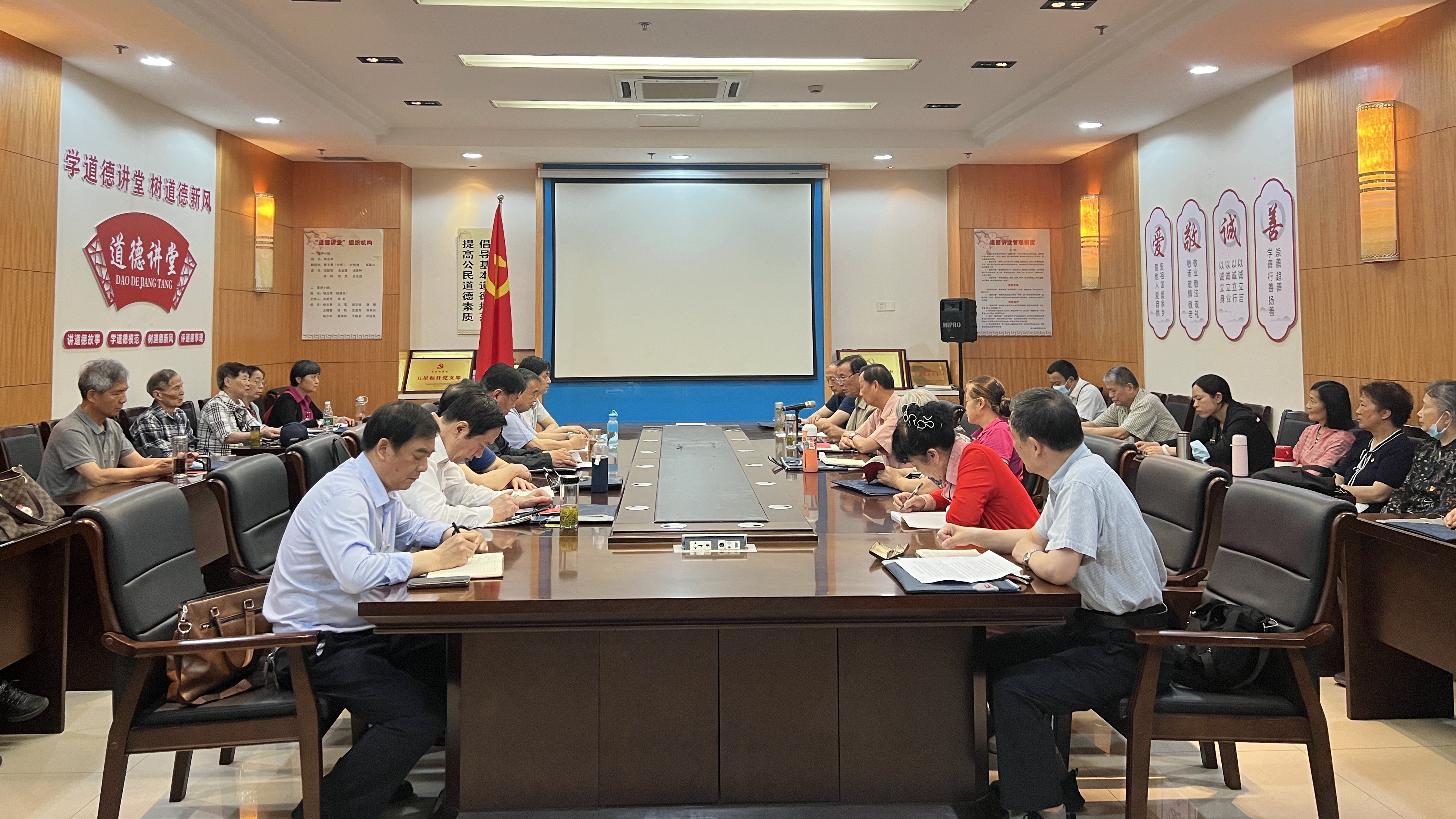 在纪念馆党课教室,离退休干部党支部集体过政治生日。赵庆明、顾锡昌等老同志与大家共同分享了入党经历,回顾了从一名普通青年到勇于冲在一线、模范履行兰台人的神圣职责,再到矢志为党和人民的事业奋斗终身的工作学习经历。