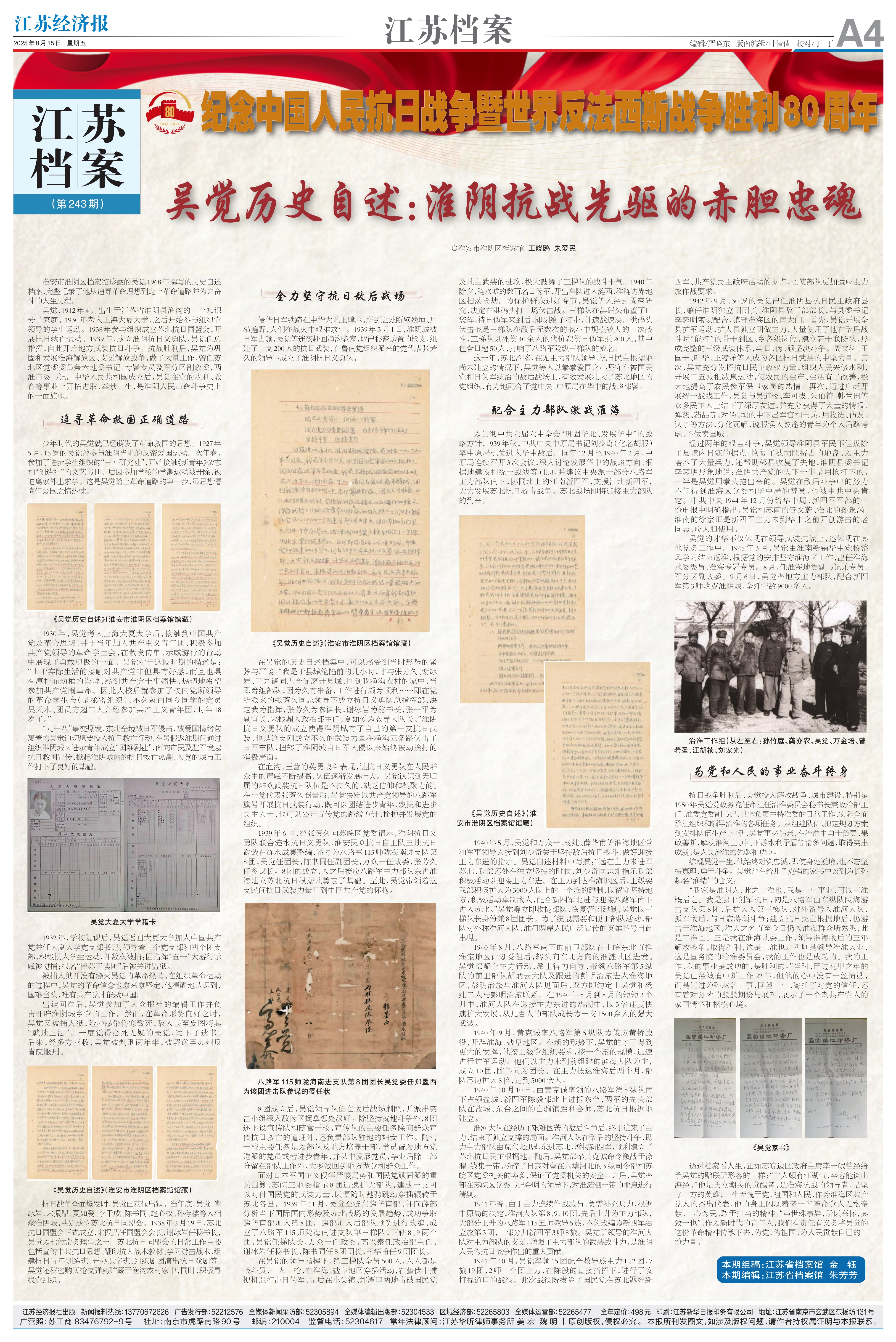 吴觉历史自述:淮阴抗战先驱的赤胆忠魂|《江苏档案》特刊第243期