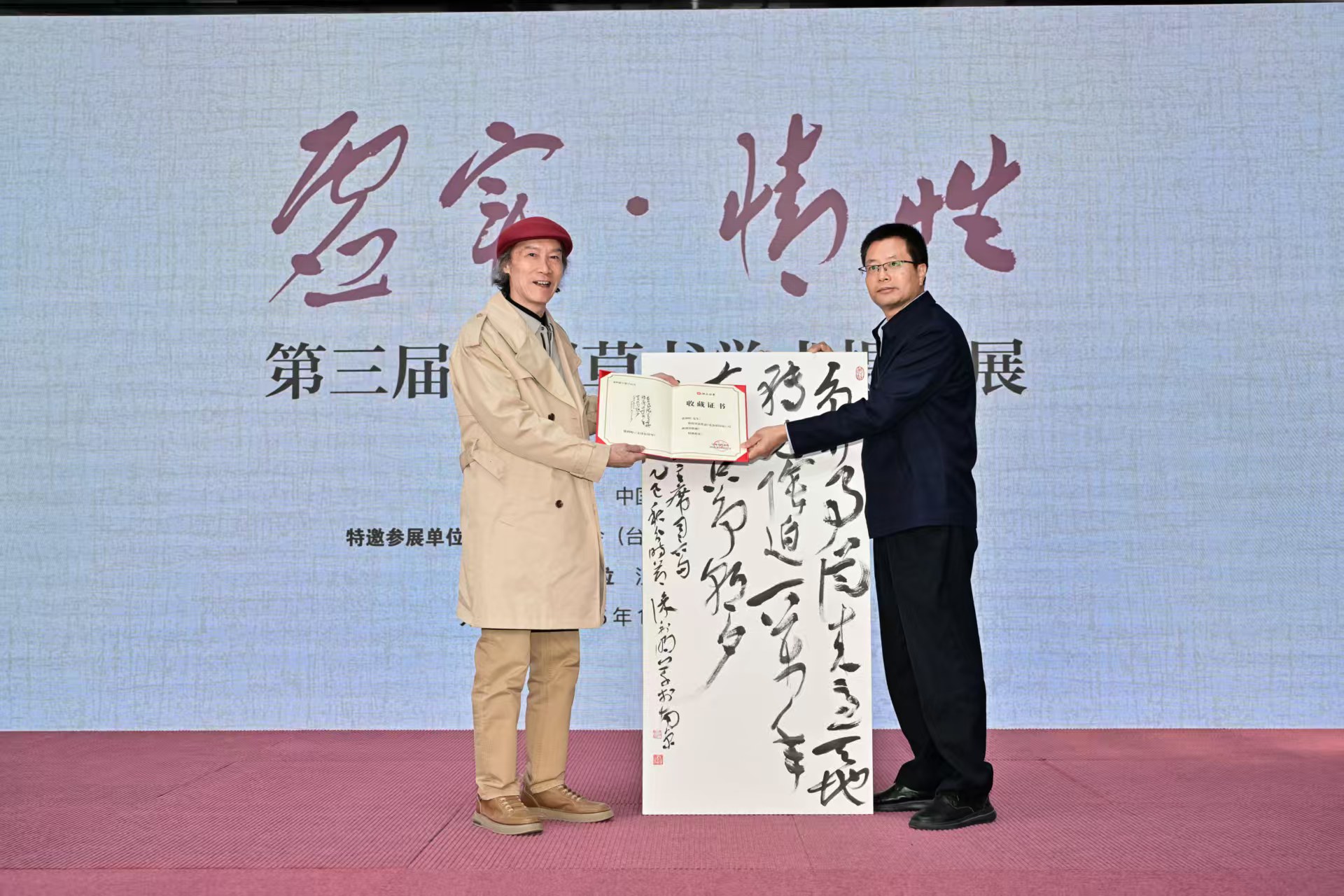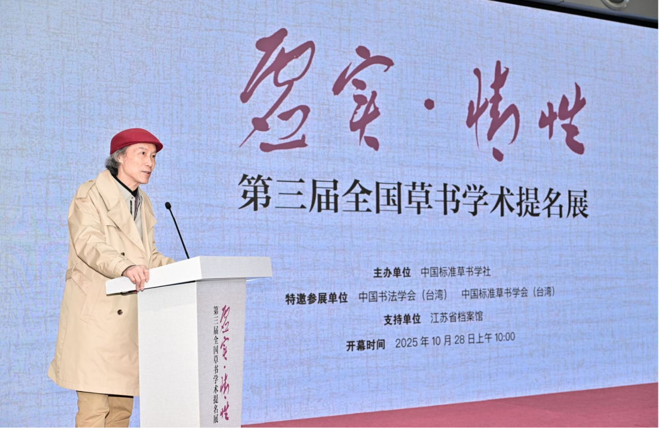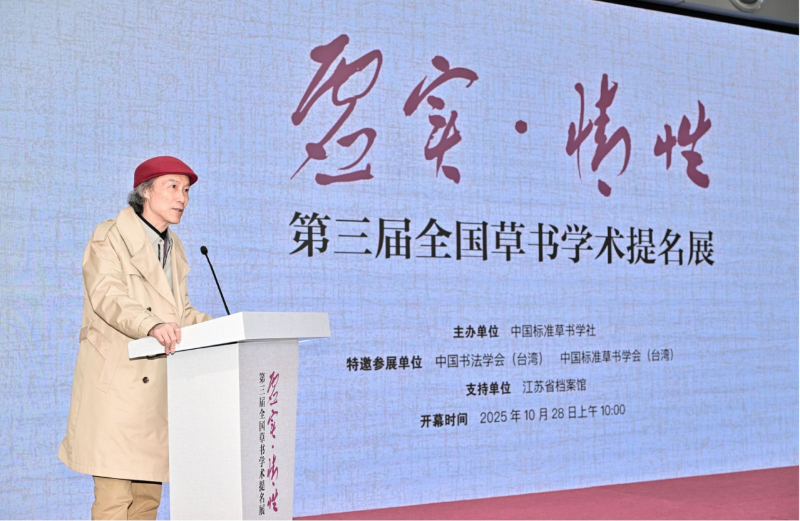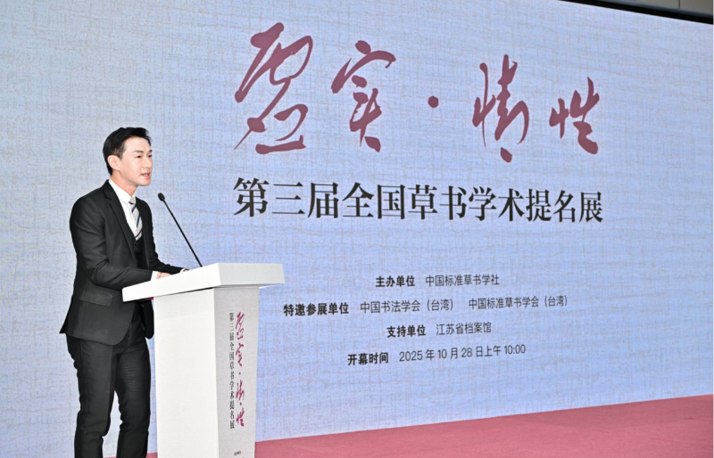 来自中国台湾的简名伟(南京云锦博物馆馆长)表示,书法艺术乃中华民族之瑰宝,此次全国草书学术提名展的举办,为两岸书法家搭建了珍贵的交流平台,让大家能在笔墨的流转间感受中华文化的博大精深,增进感情。未来期待与中国标准草书学社及两岸各界加强合作,共同推动书法艺术的传承与创新,让标准草书作为独特的文化载体,为增进两岸同胞的文化认同和情感联结注入更多正能量。