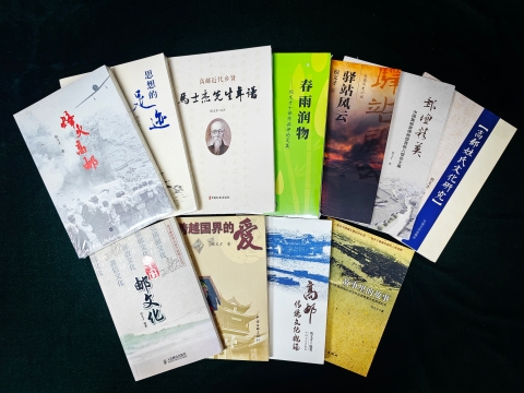 此次一并捐赠的还有近期出版、由他本人主编的《春雨润物——倪文才十部作品评论文集》。这些作品反映了高邮的历史、文化、民俗,其中长篇小说《驿站风云》被改编成同名剧本。倪文才先生长期致力于高邮文化研究,其作品史料翔实、内容详备,具有重要的学术价值和文献价值。