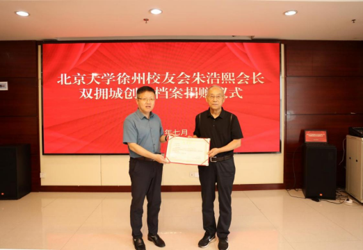 徐州有着悠久的双拥传统,铸就了深厚的军民鱼水情。1988年11月,江苏省人民政府、省军区授予徐州市“双拥城”称号,徐州成为全国第一座省级“双拥城”。2025年7月28日,在第98个建军纪念日到来之际,北京大学徐州校友会会长朱浩熙先生作为“双拥城”创建的重要推动者和档案史料的保存者,将相关档案捐赠给市档案馆,这些档案全面系统地再现了徐州作为全国首座双拥城的创建历程。捐赠仪式在市档案馆举行,刘峰馆长代表市档案馆向朱浩熙会长颁发捐赠证书。