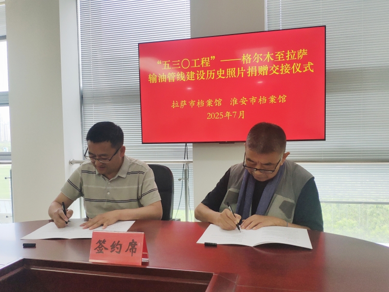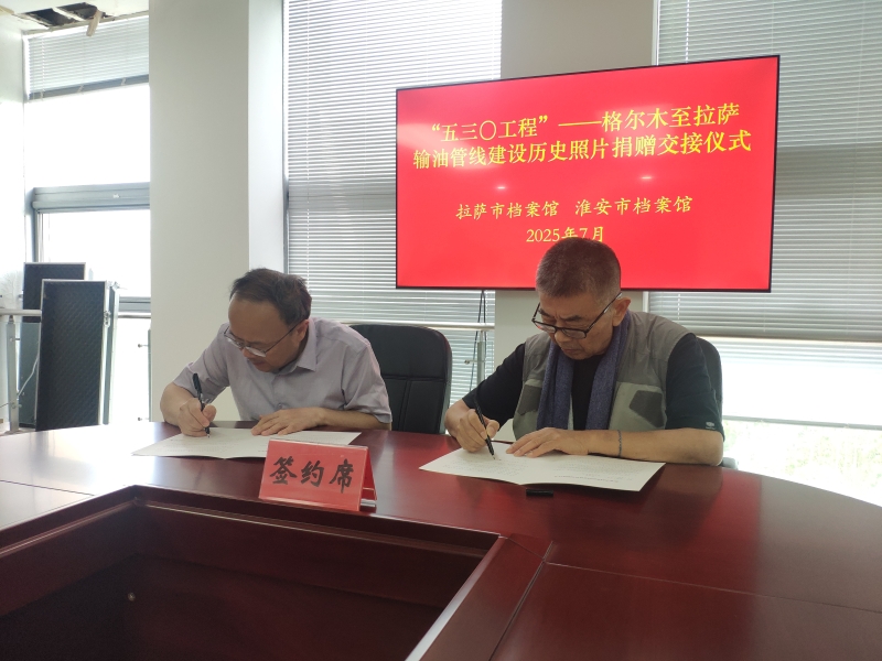7月29日,淮安市档案馆与拉萨市档案馆在淮举行“五三〇工程”历史照片捐赠交接仪式。这批珍贵影像资料记录了1972年至1977年间格尔木至拉萨输油管线的建设历程。