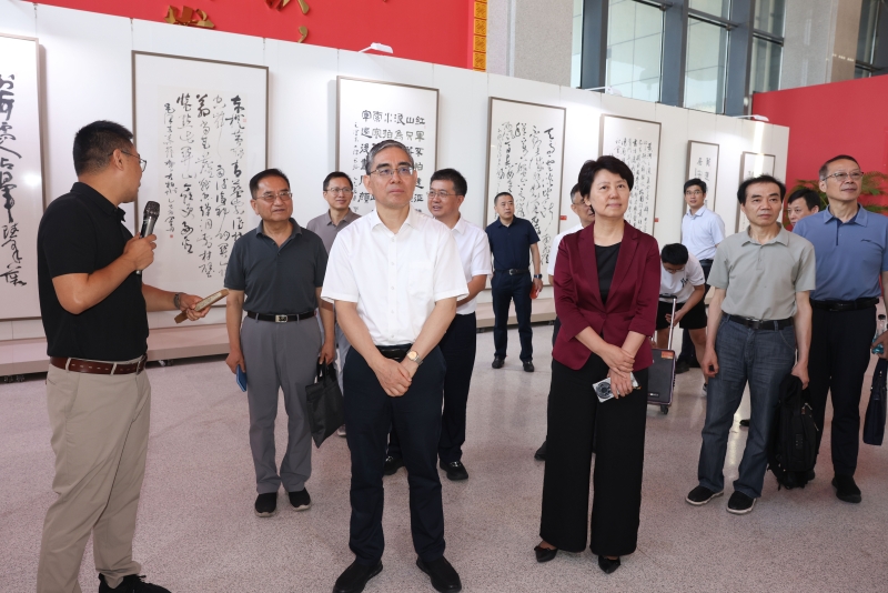 开展仪式上,顾俊、常胜梅、刘春灏共同为展览揭幕,顾俊、刘春灏、韩军以及书画名家代表张磊、谭雷鸣分别致辞。开展仪式结束后,现场嘉宾共同参观了展览。
