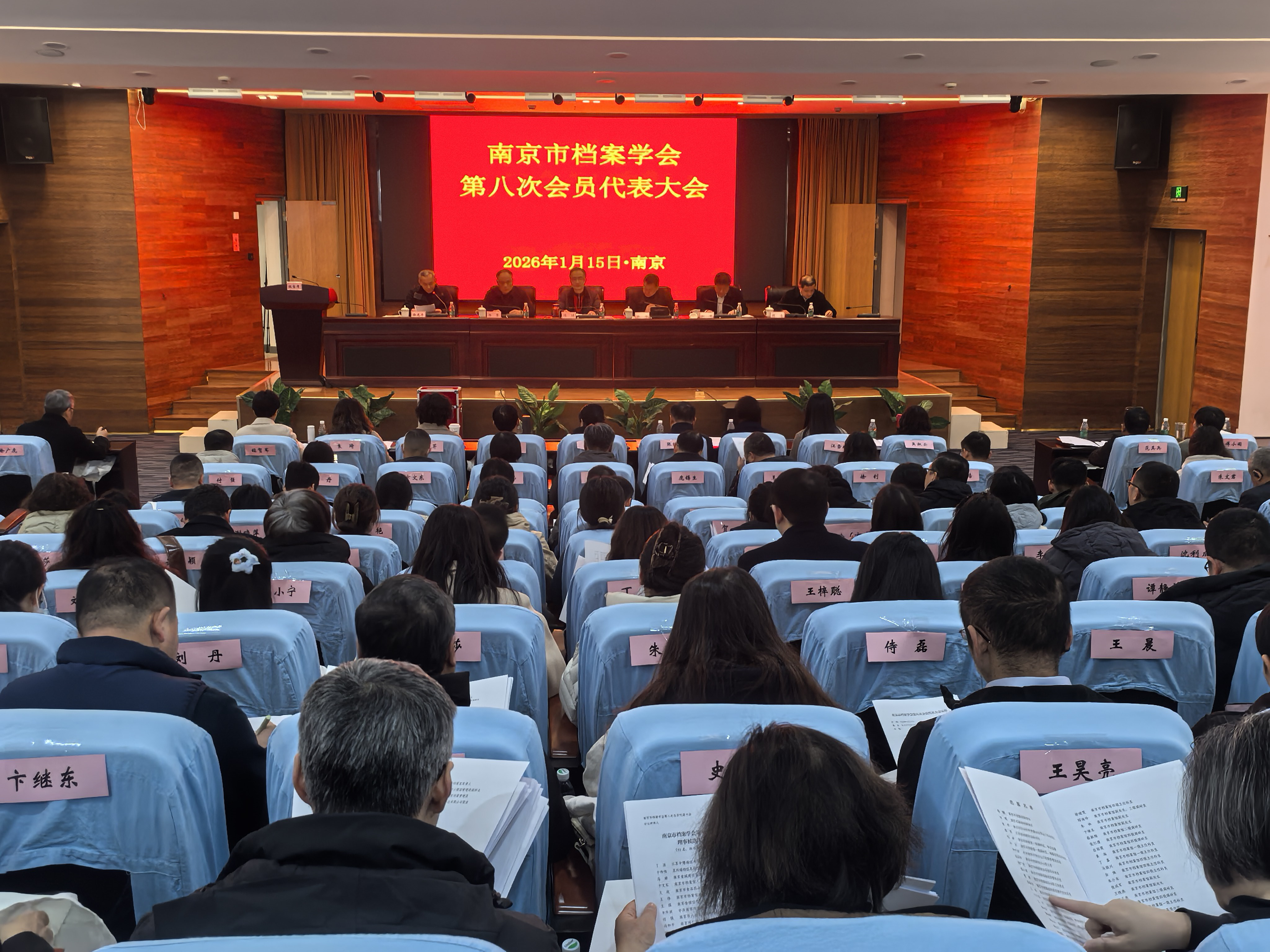 大会听取并审议通过了第七届理事会工作报告、第七届理事会财务工作报告;审议并表决通过了《南京市档案学会章程》《南京市档案学会会员管理办法》《南京市档案学会会员会费标准及管理办法》;选举产生了由51人组成的第八届理事会和新一届监事。第八届理事会第一次会议选举产生了由11人组成的常务理事会。南京市档案馆副馆长刘峰当选第八届理事会理事长,朱玉红、吴欣、张维亚当选副理事长,邱海玲兼任秘书长。