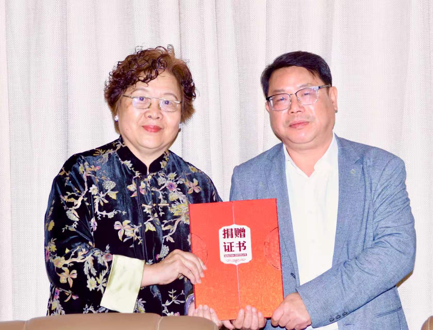 盐城市档案馆馆长齐华向捐赠者成欣女士颁发《捐赠证书》