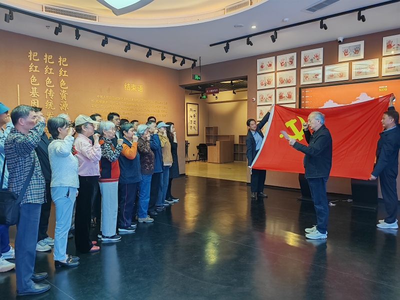 老同志们参观了竹镇抗日民主政府旧址,追忆革命先辈浴血奋战、军民同心御敌的峥嵘岁月,深刻感悟新四军“铁军精神”和抗日军民的家国情怀。在现场,老党员们面向党旗重温入党誓词。