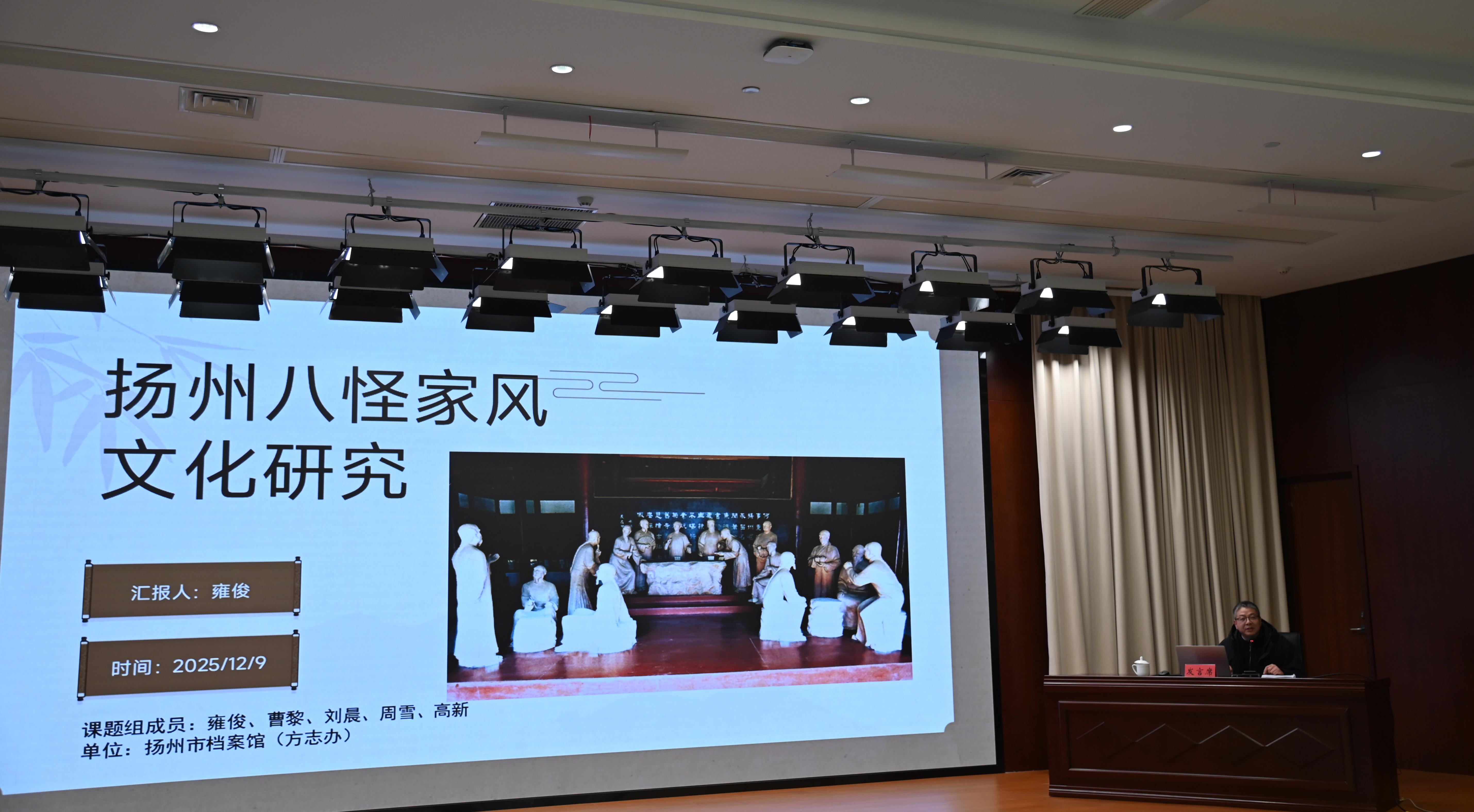 12月9日,由扬州市纪委监委、市社科联主办,邗江区纪委监委承办的“激发优秀因子 赋予时代内涵——扬州八怪与廉洁文化”学术交流活动在扬召开,国内著名专家学者以及有关地区、部门和社科专项论文作者代表近60人应邀参会,共探扬州八怪文化中的廉洁密码。会上,扬州市档案馆课题组发布扬州八怪家风文化研究阶段性成果《尚俭朴·重气节·倡清正——“扬州八怪”家风文化研究》,从档案视角系统解读了八怪家风的精神内核与当代价值,引发与会者广泛共鸣。