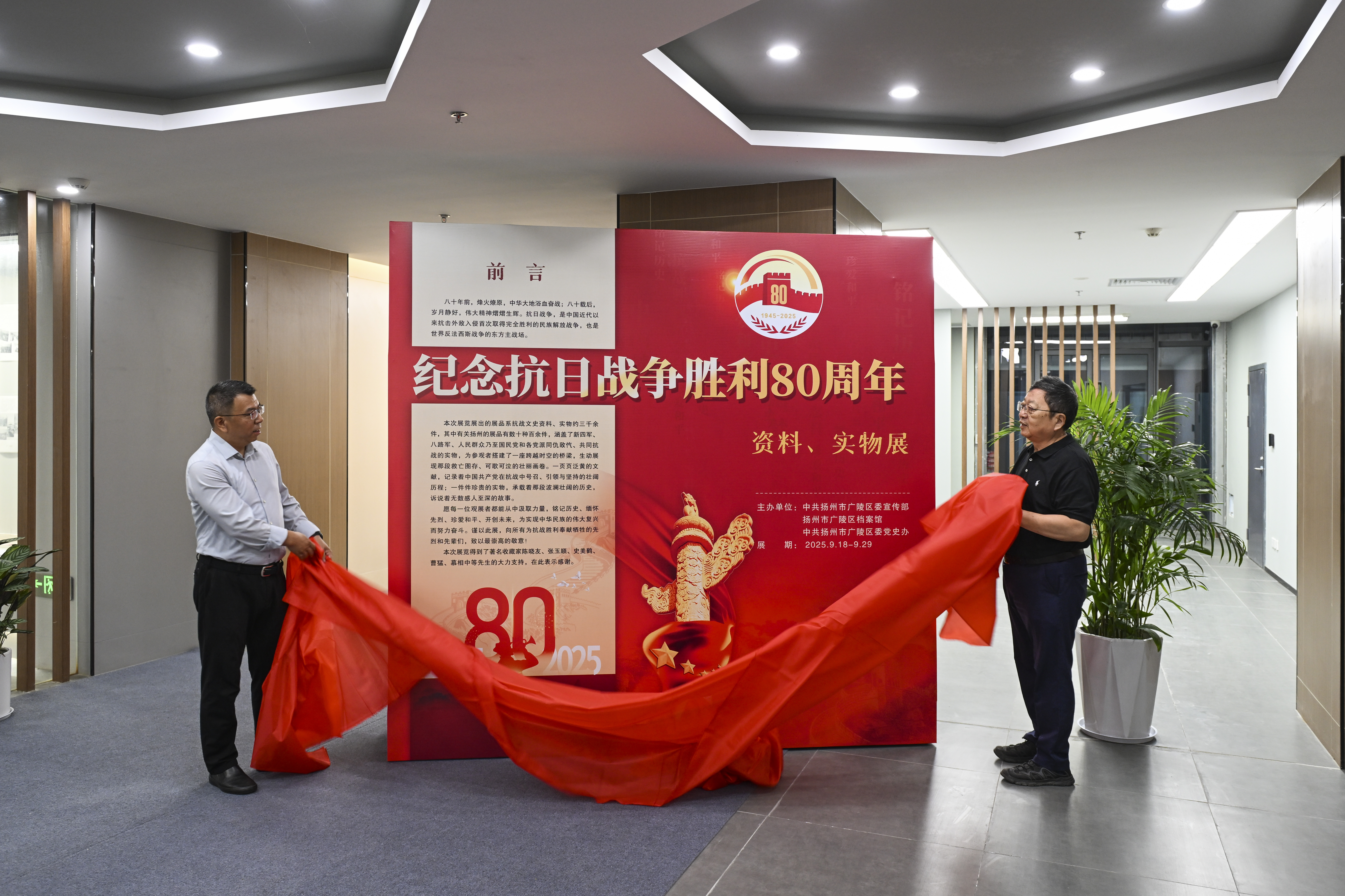 9月18日,由扬州市广陵区委宣传部、区档案馆、区委党史办共同举办的纪念抗日战争胜利80周年资料、实物展在区档案馆陈列室开展,区委副书记王震出席活动并为展览揭展。