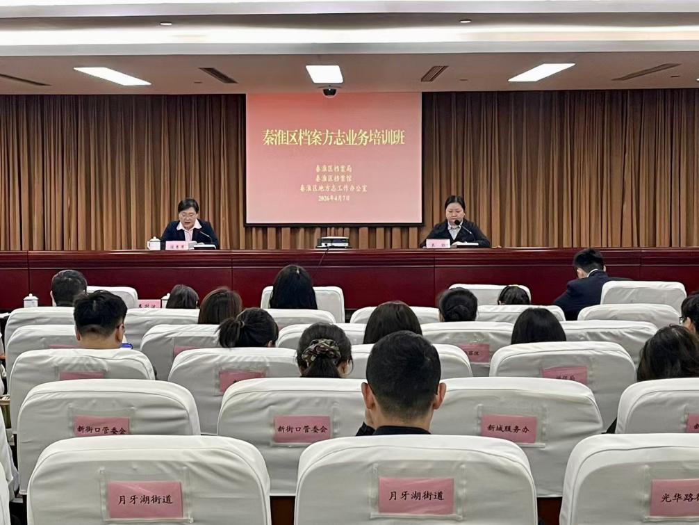为进一步强化南京市秦淮区档案工作人员依法管档意识和业务能力,4月7日,秦淮区档案局、区档案馆、区地方志工作办公室联合举办2026年度档案方志业务培训会议。秦淮区委副书记陈慧男出席并讲话,秦淮区档案馆馆长吴欣主持会议,全区各机关、街道、企事业单位档案工作负责人及业务骨干共计140人参加档案业务培训。